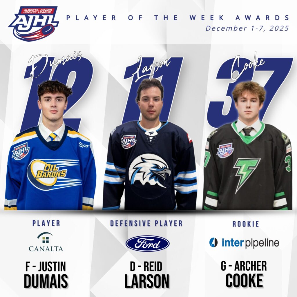 Drayton Valley Thunder goaltender Archer Cooke is the Inter Pipeline AJHL Rookie of the Week. The first-year goaltender posted a 2-0 record from December 1st -7th and currently leads the AJHL with a .928 save percentage.